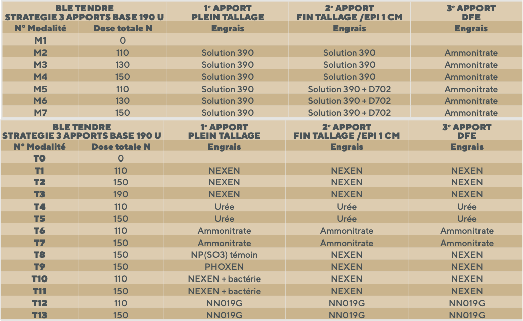 Quelle est la performance de différentes formes d’engrais et l’intérêt d’y ajouter des biostimulants pour améliorer l’efficacité de l’azote et du phosphore apporté sur blé ? Sur les essais, on compare NEXEN, l’urée, l’Ammonitrate, la solution azotée et plusieurs biostimulants associés à l’une ou l’autre des formes. On y mesure aussi l’efficacité de la protection du phosphore avec PHOXEN.